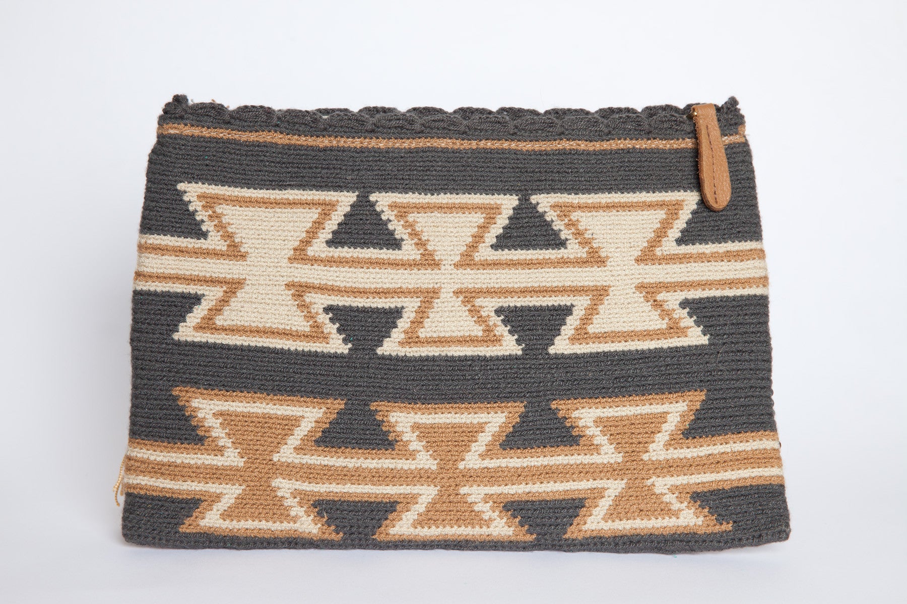 - Tan, cream and grey crocheted
