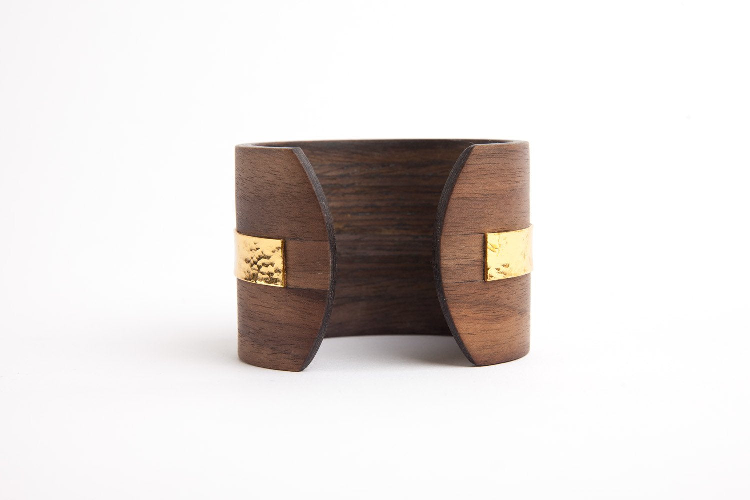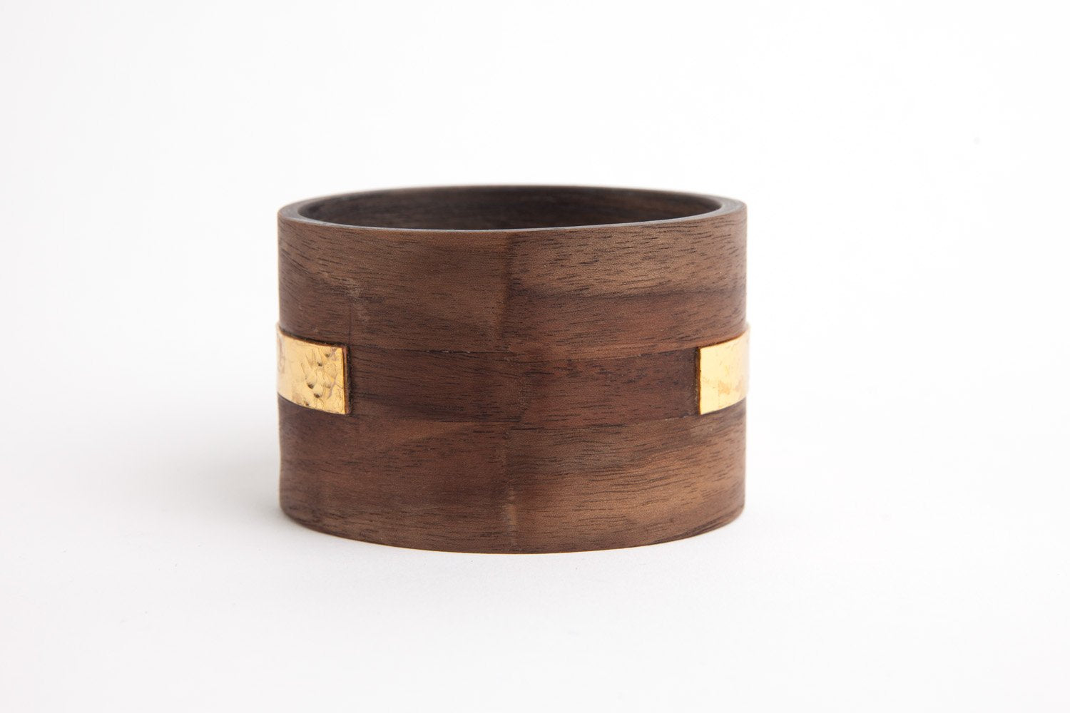 Wooden Cuff with 24K Gold & Emerald Cabochon